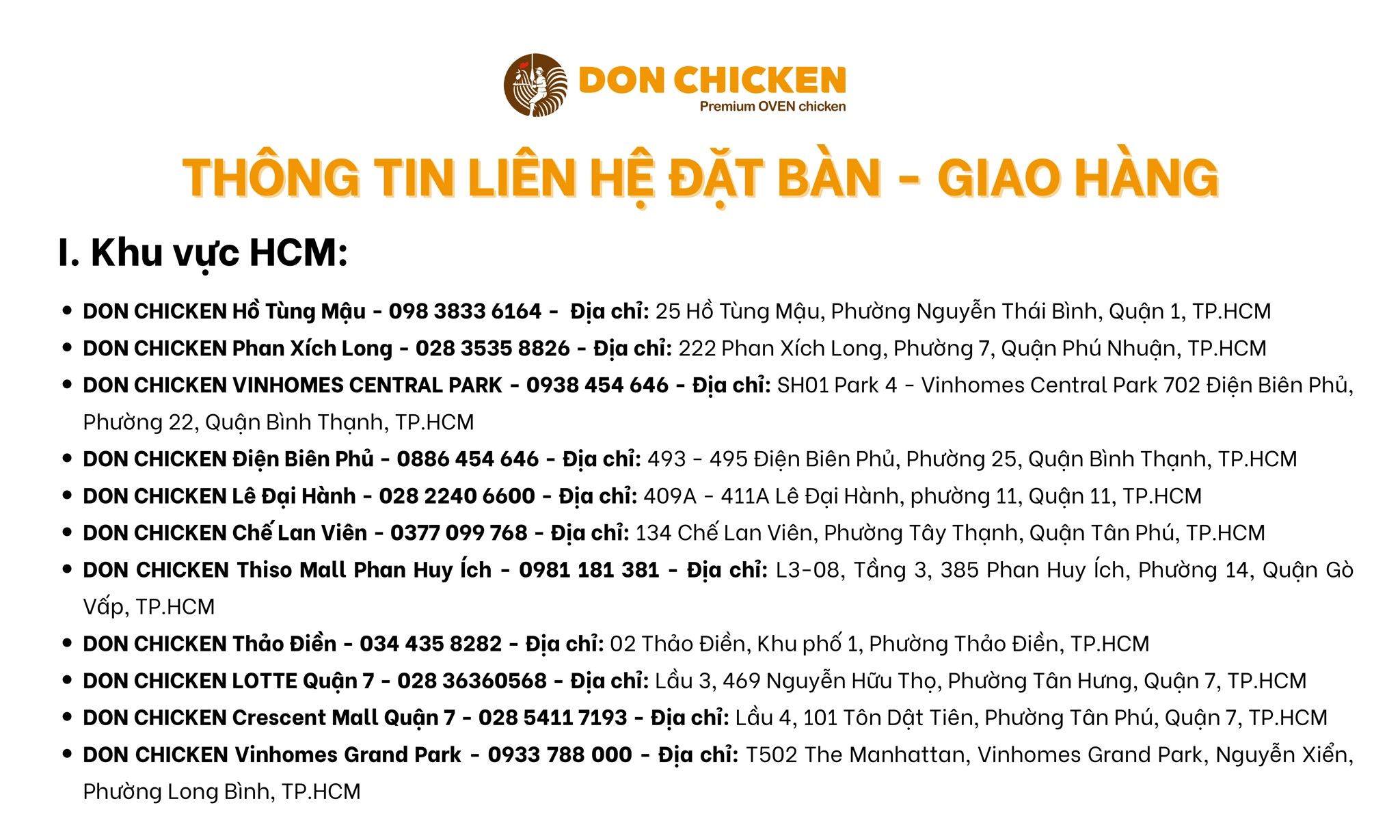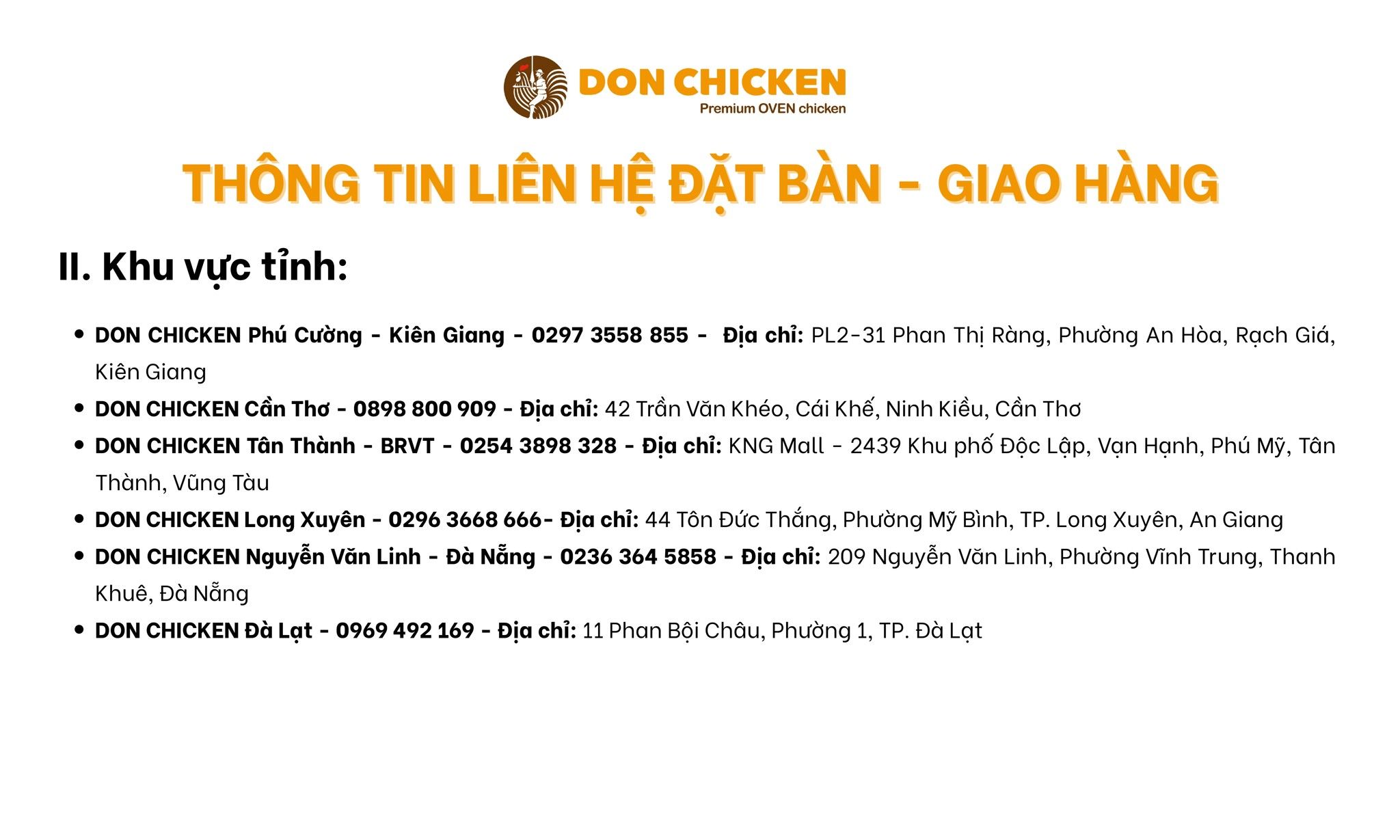 HỆ THỐNG CỬA HÀNG DON CHICKEN MIỀN NAM