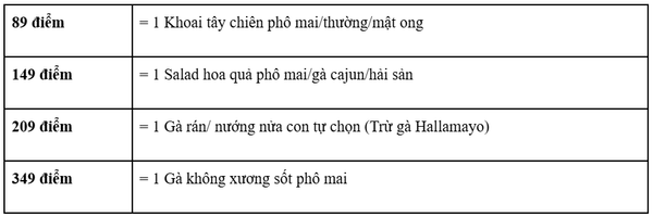 - Quy đổi: 1 điểm = 10.000 VND